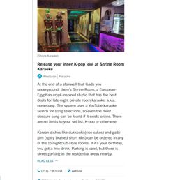 Overall, Shrine Karaoke is a lively and vibrant spot that caters to those looking for a fun and entertaining night out. So gather your friends, grab a mic, and get ready to enjoy an unforgettable experience at Shrine Karaoke.